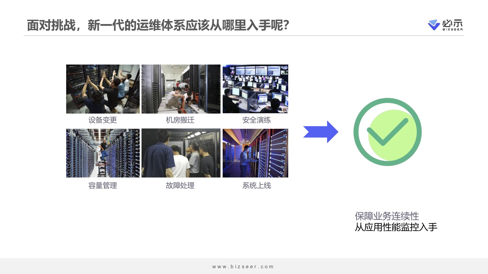 对于数据中心来说,保障业务连续性是最重要的事情。但是正如罗马不能一天建成,AIOps需要一步一步建设。那么从哪里入手?必示的选择是先从应用性能监控入手。