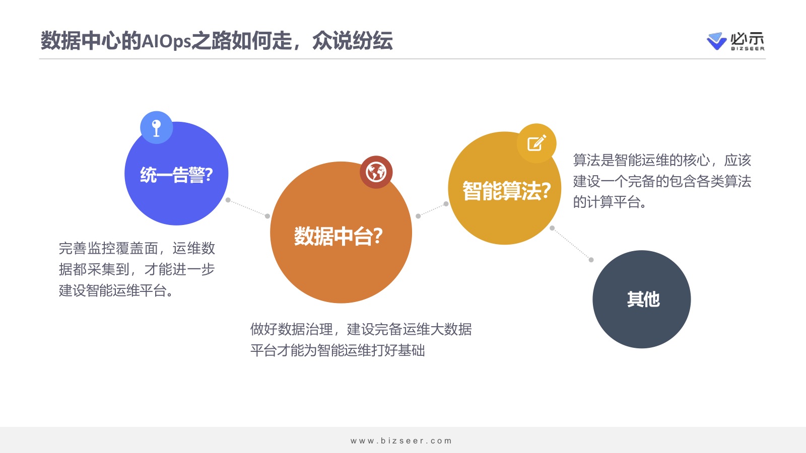 数据中心AIOps之路如何走?关于这个问题有很多声音,比如统一告警、数据中台、智能算法以及其他。哪个是正确的?我们复盘以往项目经验,发现答案早已有之。