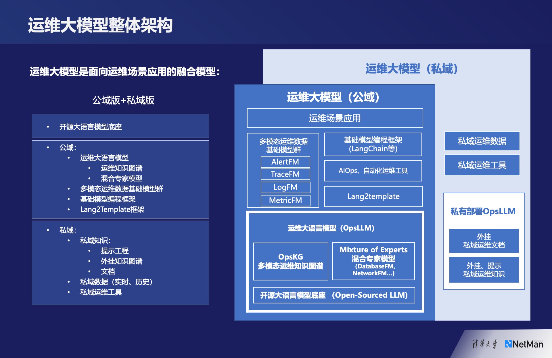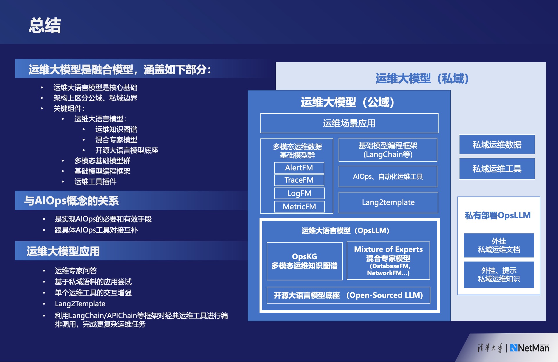 然后,在私有部署方面,可以使用一些轻量级的方法将私有的个性化特性融入运维大模型中。